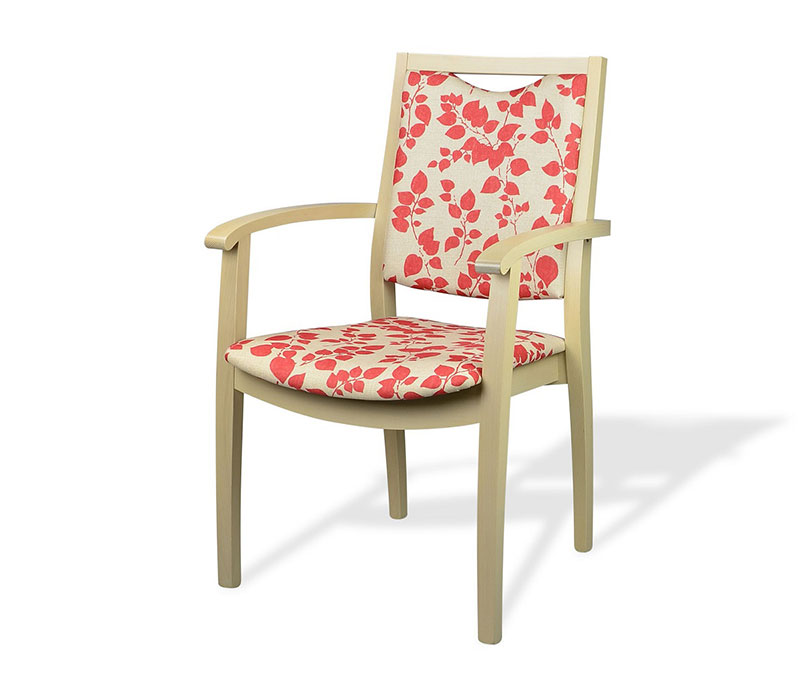 Stacking arm chair. Features an easily removable seat with single turning PVC knob.