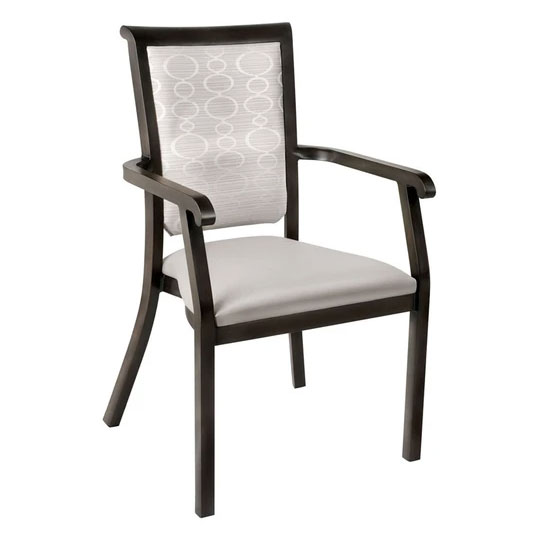 Aluminum stacking arm chair (Wood look Frame) w/upholstered seat/back.