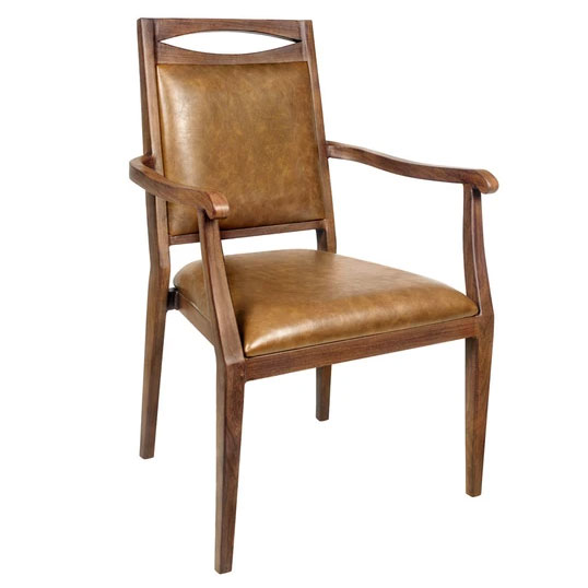 Aluminum stacking arm chair (Wood look Frame) w/upholstered seat/back.